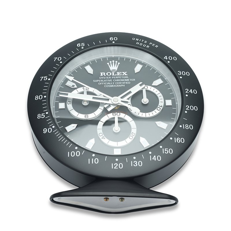This precision-crafted desk clock brings the spirit of motorsport and horological excellence right to your office, shelf, or study. The raised 3D subdials and polished hour markers create an authentic, high-end feel—replicating the aesthetic of the Rolex Daytona Cosmograph in a bold, full-black finish. The brushed chapter ring, tachymeter bezel, and detailed hands offer an unmatched visual presence on any executive desk.