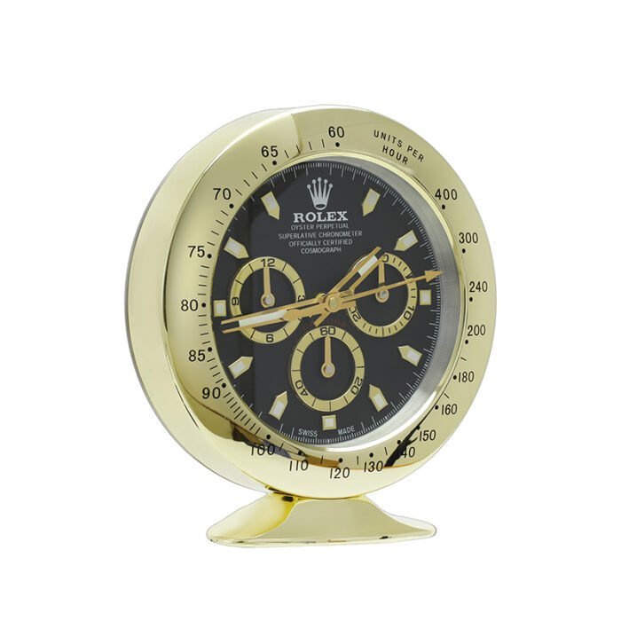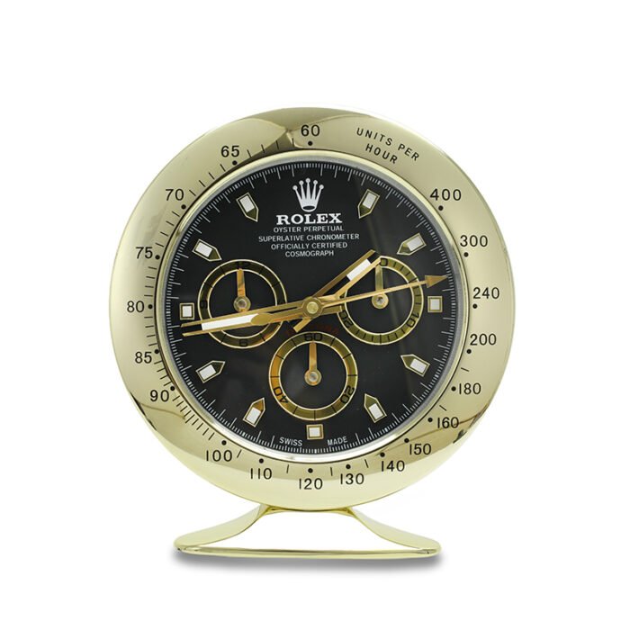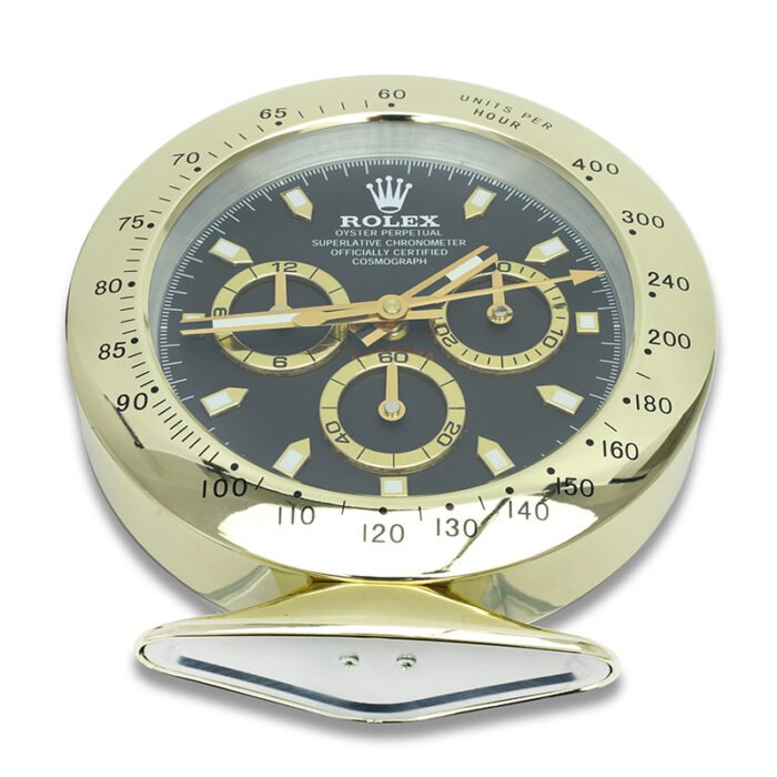 Bring timeless sophistication to your space with the Daytona, Gold and Black Desk Clock — a luxury Rolex-style desk clock that redefines classic elegance. Inspired by the iconic Rolex Daytona chronograph, this premium table clock is designed for watch enthusiasts, collectors, and professionals who demand refined decor and precision timekeeping.