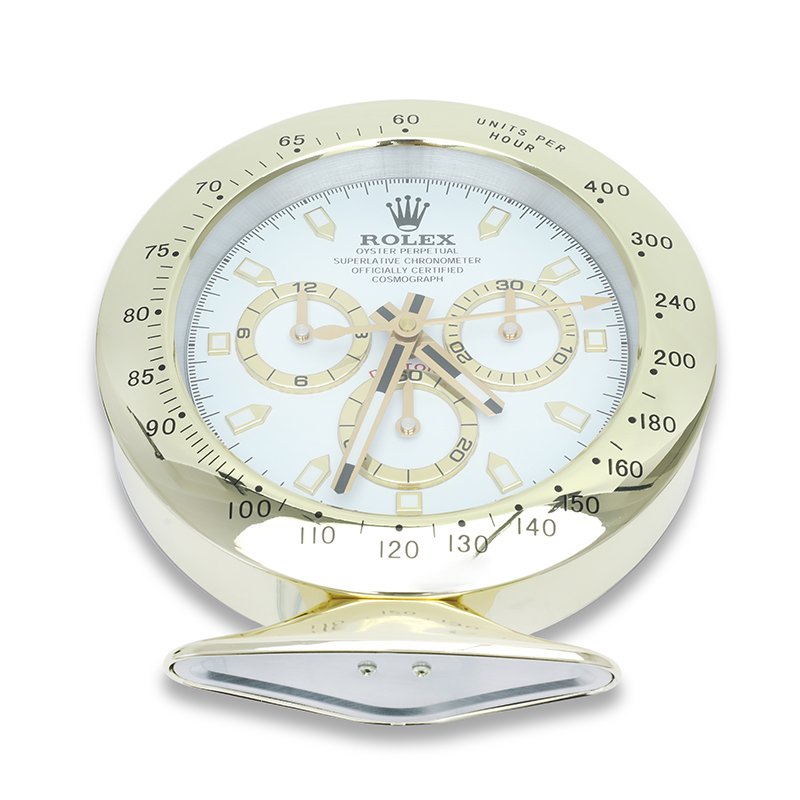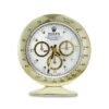 This Rolex desk clock replica brings the prestige of horology into your office, study, or boutique. Its gold-and-white color combination complements luxury interiors, making it the perfect executive desk clock, showroom accessory, or upscale gift.