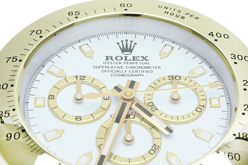 Part of our signature collection of Rolex-style desk clocks, the Daytona Gold and White model is available only at LuxeClocks. Designed with precision and manufactured to the highest standards, this luxury table clock is a limited edition piece that blends craftsmanship with timeless design.