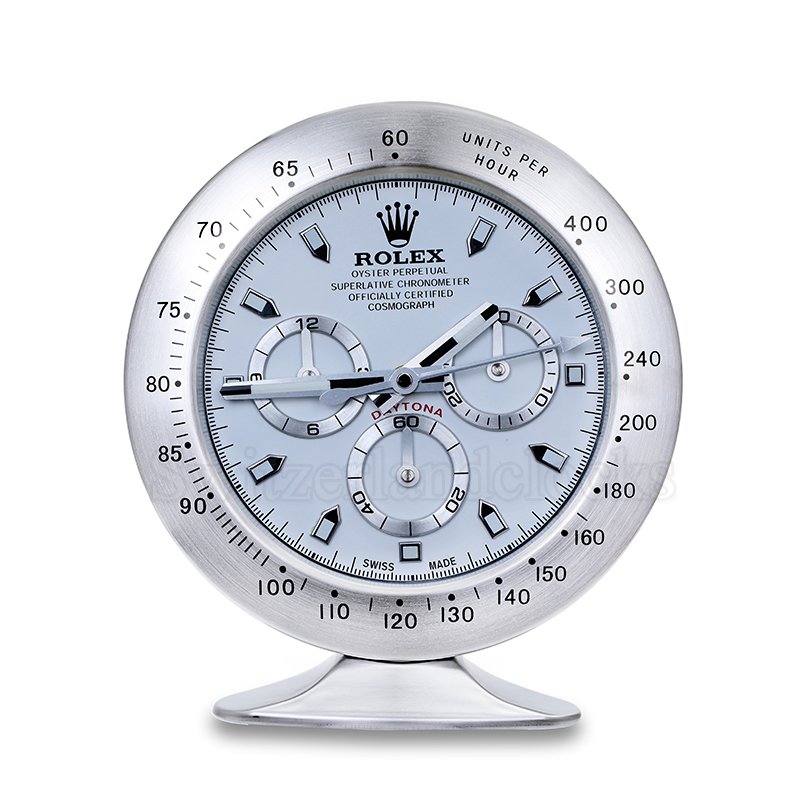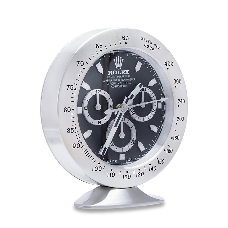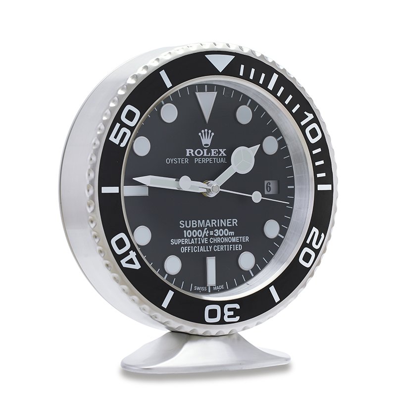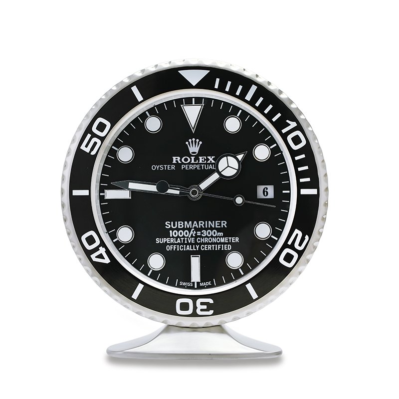 Crafted with a brushed stainless steel body and protected by a tempered glass lens, this Rolex table clock is more than a decorative piece — it’s a precision timekeeper. Featuring a silent sweep quartz movement, luminous-style hour markers, and a working date window at 3 o’clock, it’s designed for those who appreciate fine craftsmanship and sophisticated style.