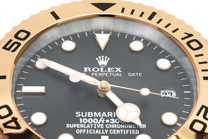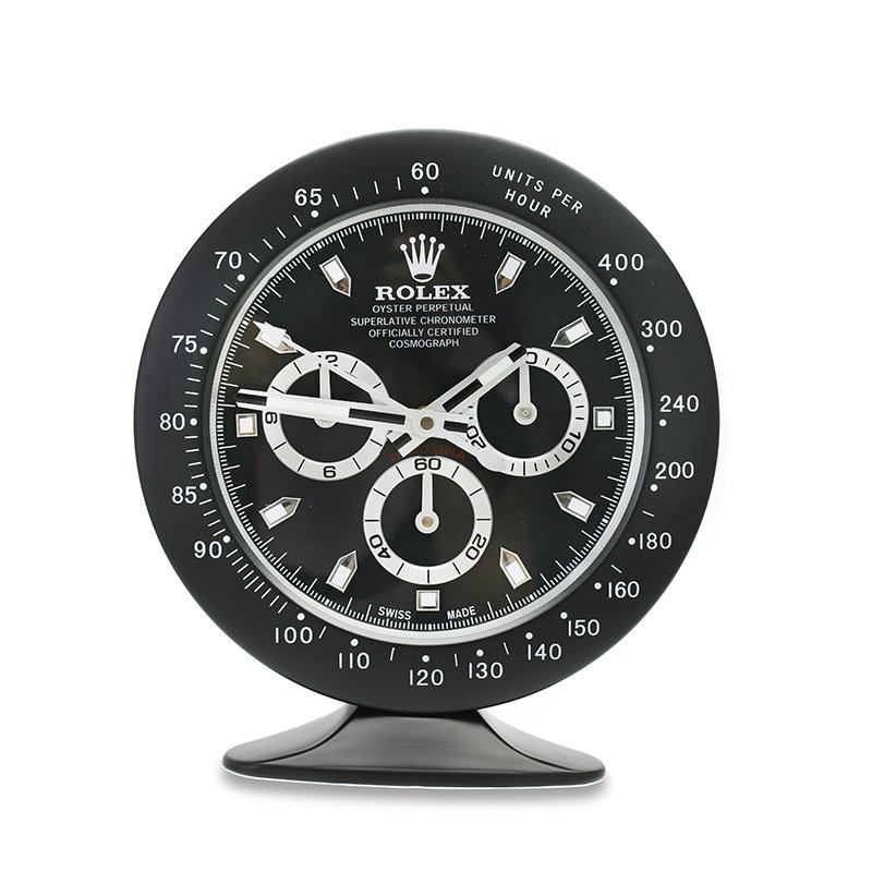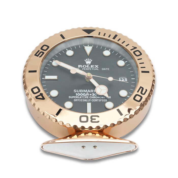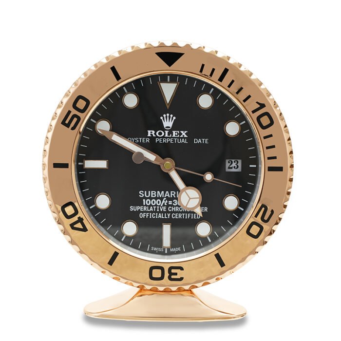 - Rolex Table Clock Design: Rose Gold & Black bezel and dial that mirror the aesthetics of the iconic Rolex Submariner.